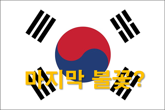 일단 기분은 좋다. 꿈인지 생인지 모르겠을 정도다. 고구려 이래 처음이 아닌가 싶다. 하지만 인구는 줄고 치솟는 물가에 주머니 사정은 갈수록 안 좋아지는 게 현실이다보니, 마지막일 불꽃일 수도 있다.. 게다가 만날 싸움박질만 하는 정치권을 보면 완전 후진국이다.